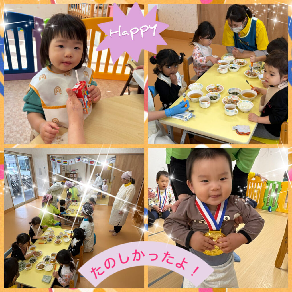 キラキラのメダルを胸に満面の笑顔!美味しい給食をもりもり食べて、ぐっすりと夢の中へ・・・