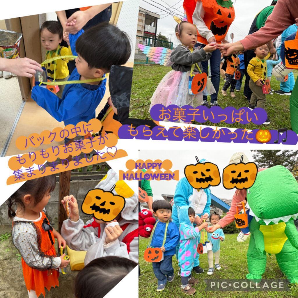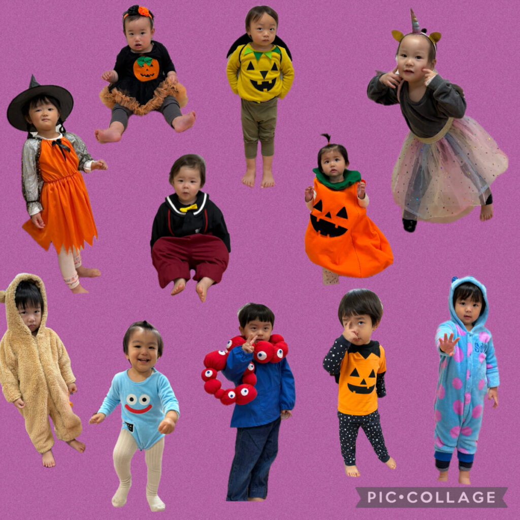 お母さんが夜な夜な裁縫した🧵手作りの仮装や、おばあちゃんがご時世に合わせて作ったミャクミャクの仮装など、工夫がいっぱいでみんなかわいい仮装での登園でした🎃